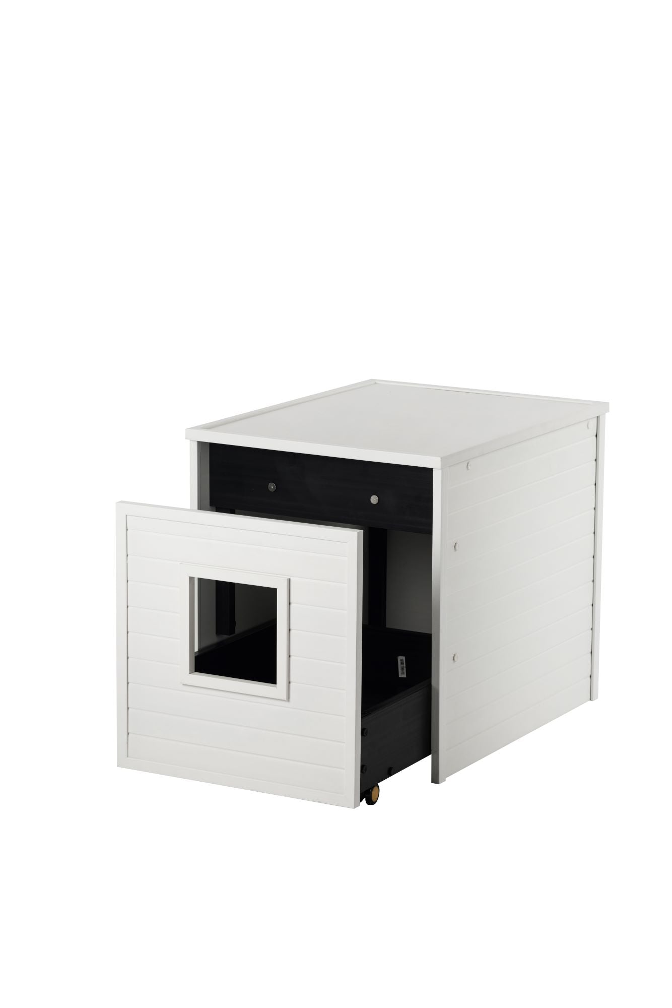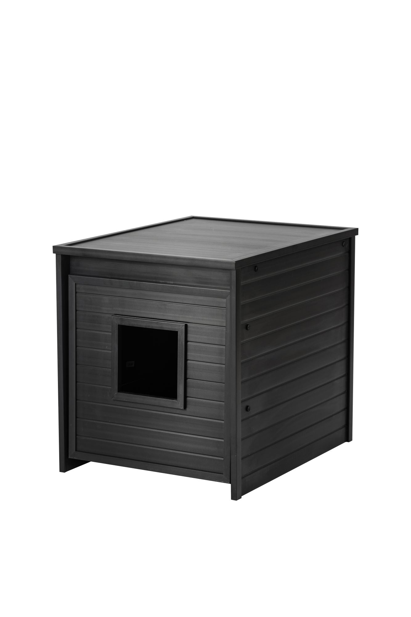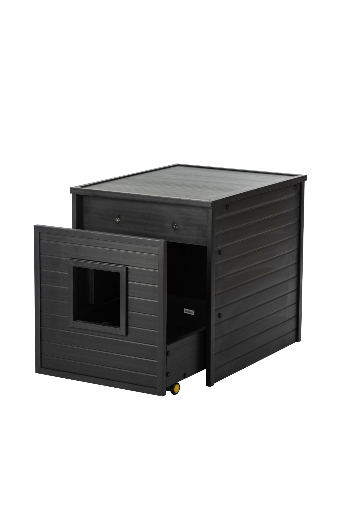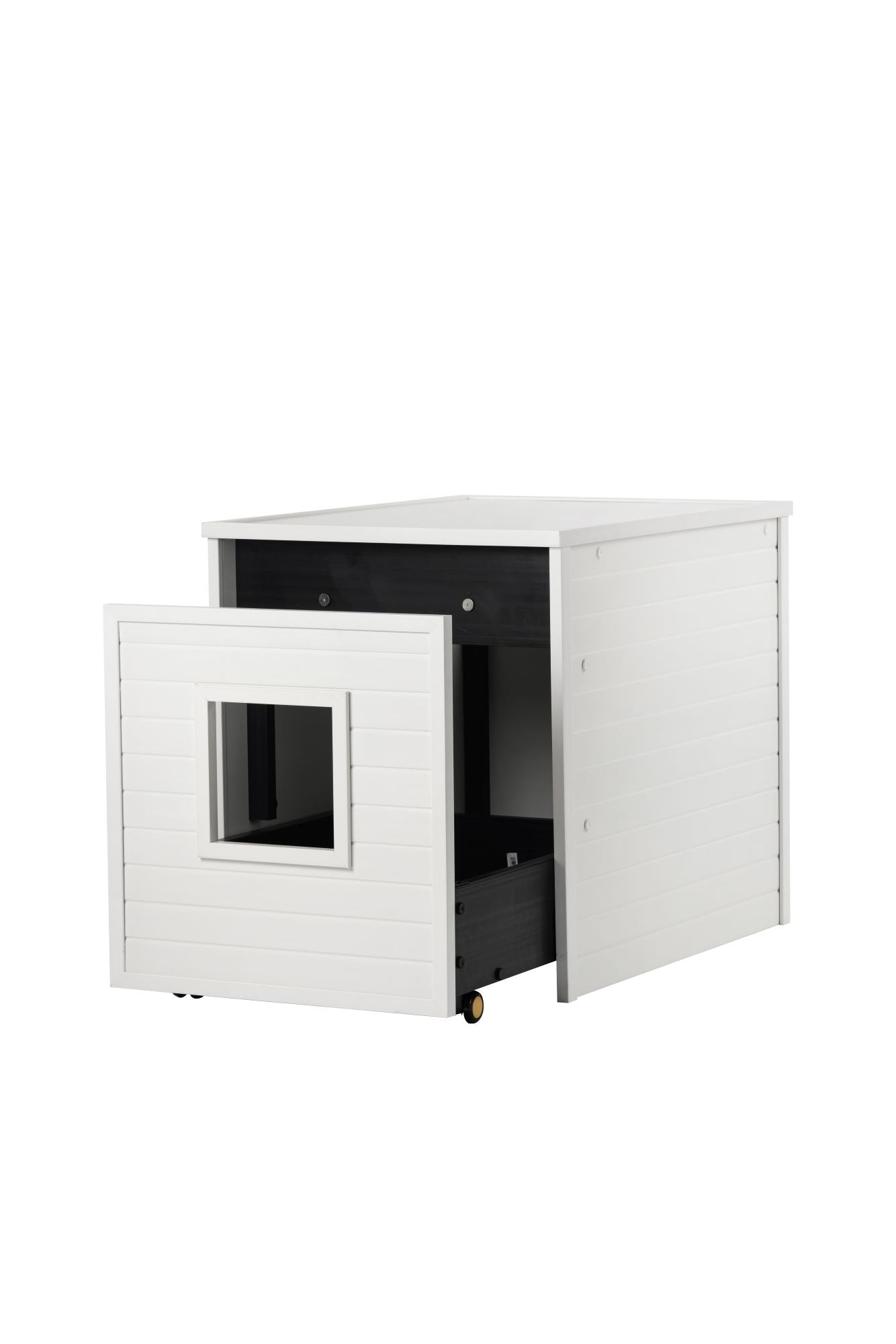 Introducing the New Age Pet® Freedom Litter Loo® – a stylish and functional solution for pet owners. Crafted with ECOFLEX®, a proprietary blend of new & recycled polymers and reclaimed wood fiber by-products, this litterbox enclosure is non-toxic, eco-friendly, and resistant to moisture and odor. The innovative design features a roll-out compartment, making litterbox cleaning quick and easy. Simply pull out the compartment, scoop, and roll it back into place with the secure magnet closure. Available in black and antique white, the Freedom Litter Loo® adds a touch of elegance to your home. With easy assembly, cleaning, and a 10-year limited warranty, it's the perfect choice for pet lovers who value both style and convenience. Upgrade your pet's space today with the New Age Pet® Freedom Litter Loo® – where caring for your furry friend is a breeze.