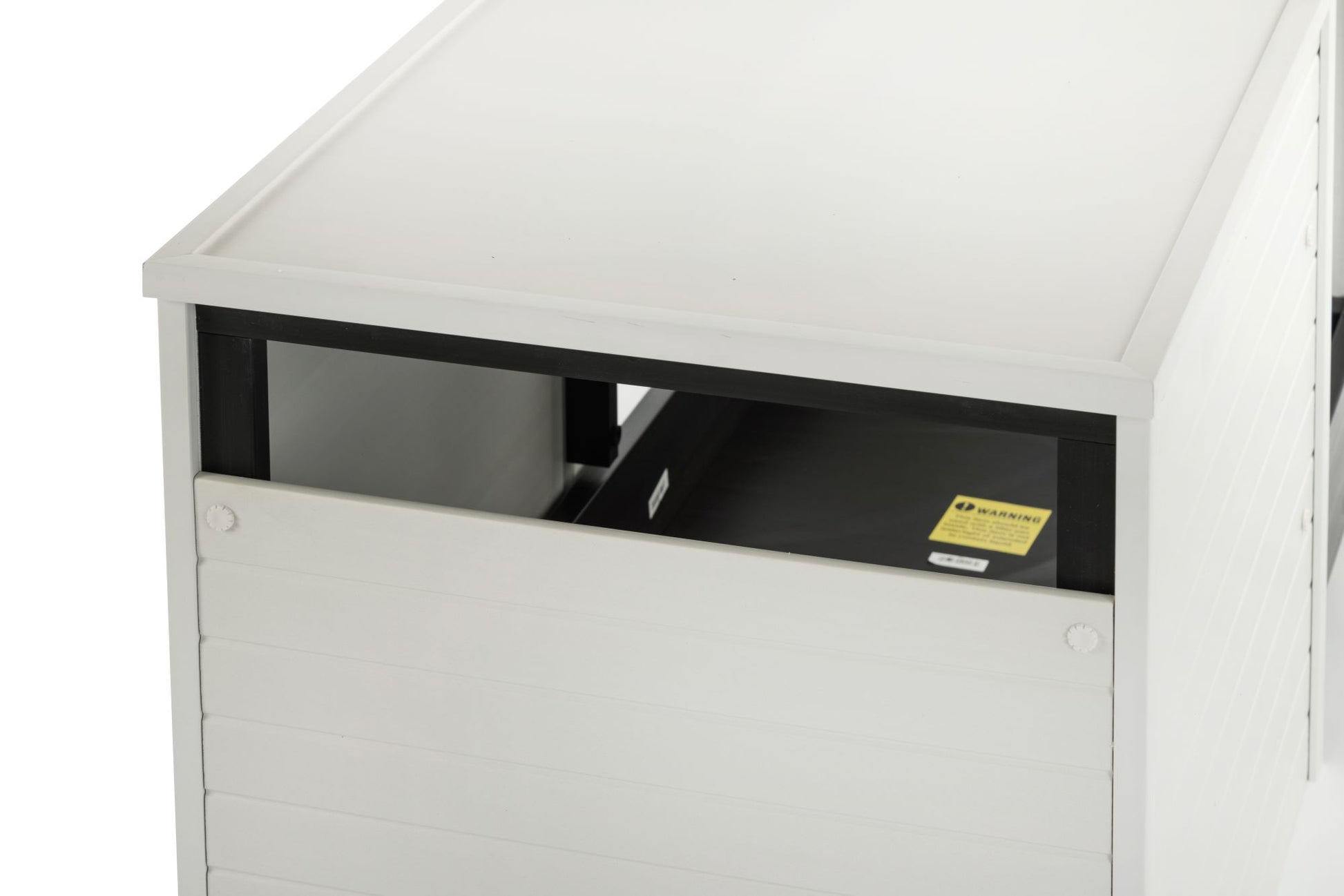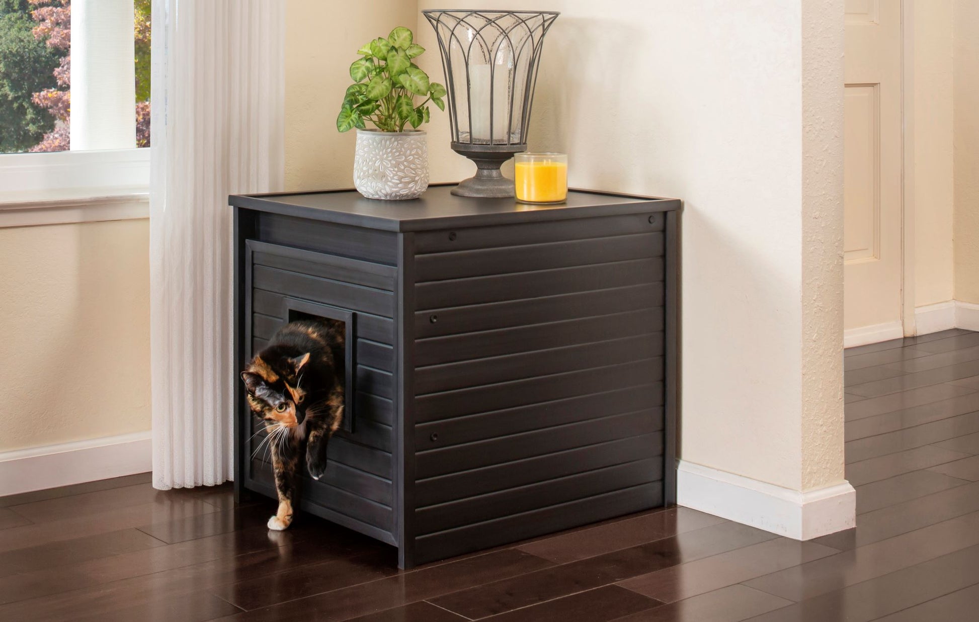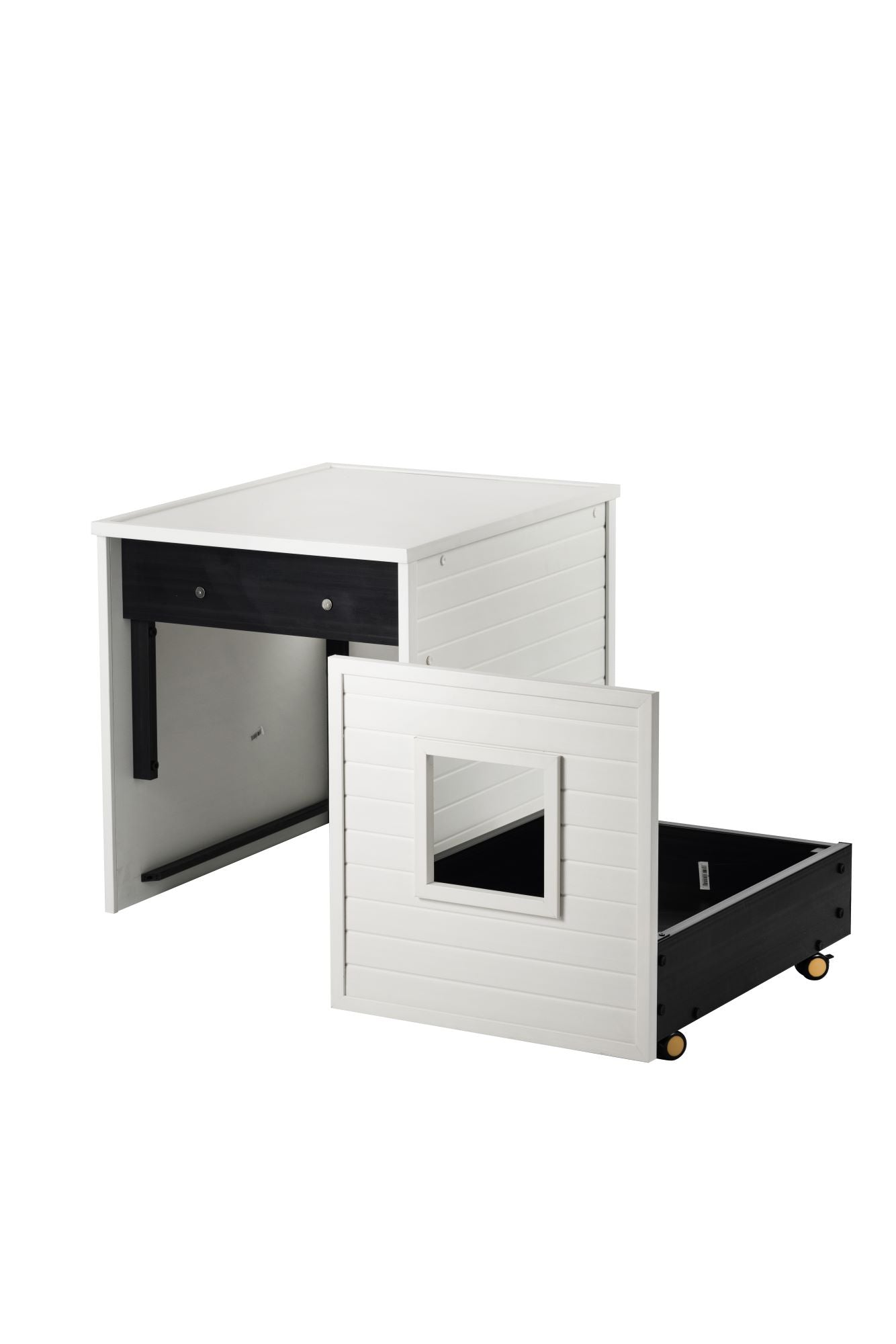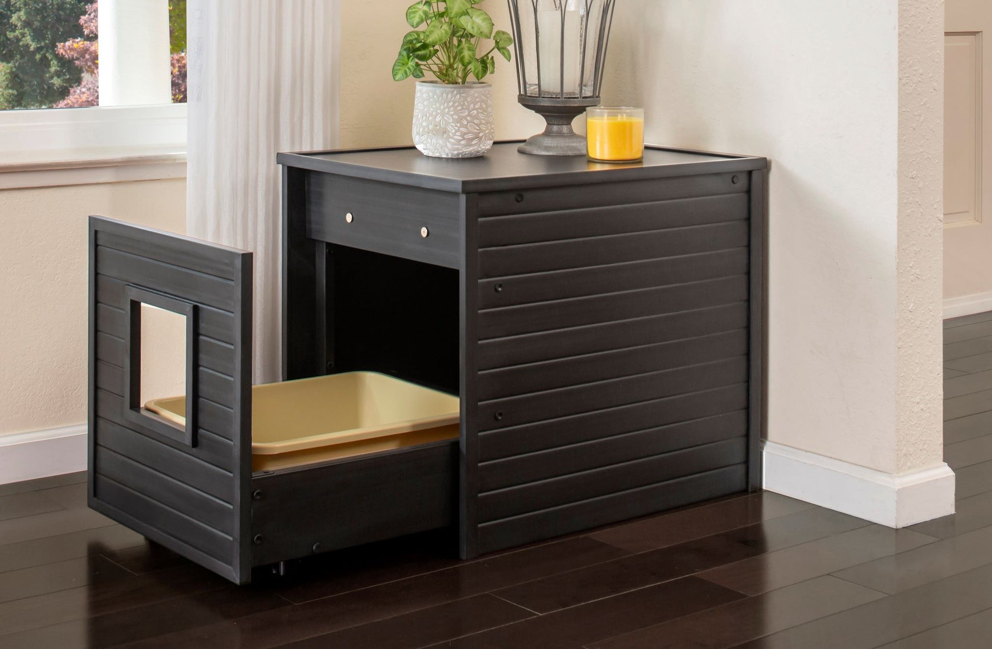 Introducing the New Age Pet® Freedom Litter Loo® – a stylish and functional solution for pet owners. Crafted with ECOFLEX®, a proprietary blend of new & recycled polymers and reclaimed wood fiber by-products, this litterbox enclosure is non-toxic, eco-friendly, and resistant to moisture and odor. The innovative design features a roll-out compartment, making litterbox cleaning quick and easy. Simply pull out the compartment, scoop, and roll it back into place with the secure magnet closure. Available in black and antique white, the Freedom Litter Loo® adds a touch of elegance to your home. With easy assembly, cleaning, and a 10-year limited warranty, it's the perfect choice for pet lovers who value both style and convenience. Upgrade your pet's space today with the New Age Pet® Freedom Litter Loo® – where caring for your furry friend is a breeze.