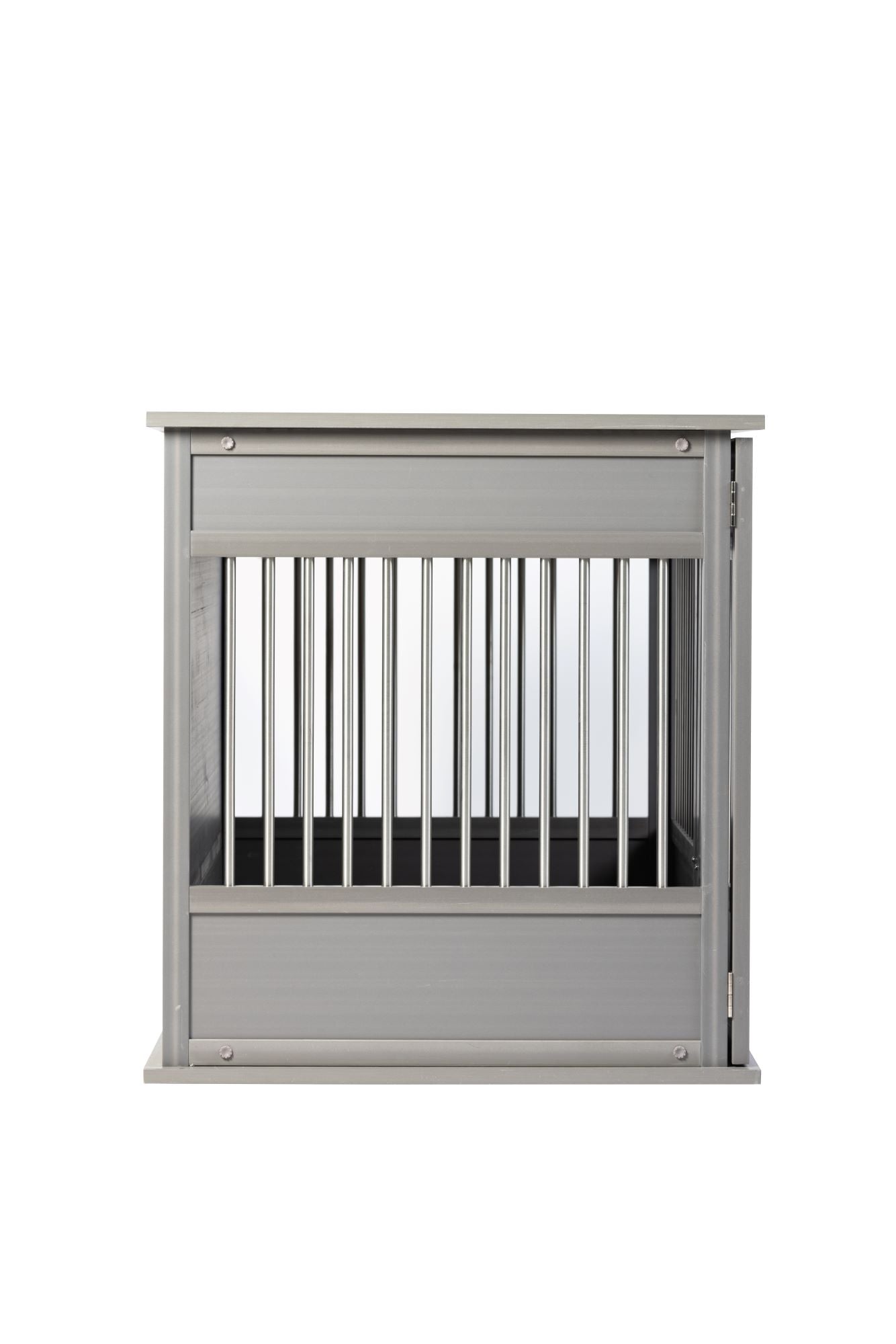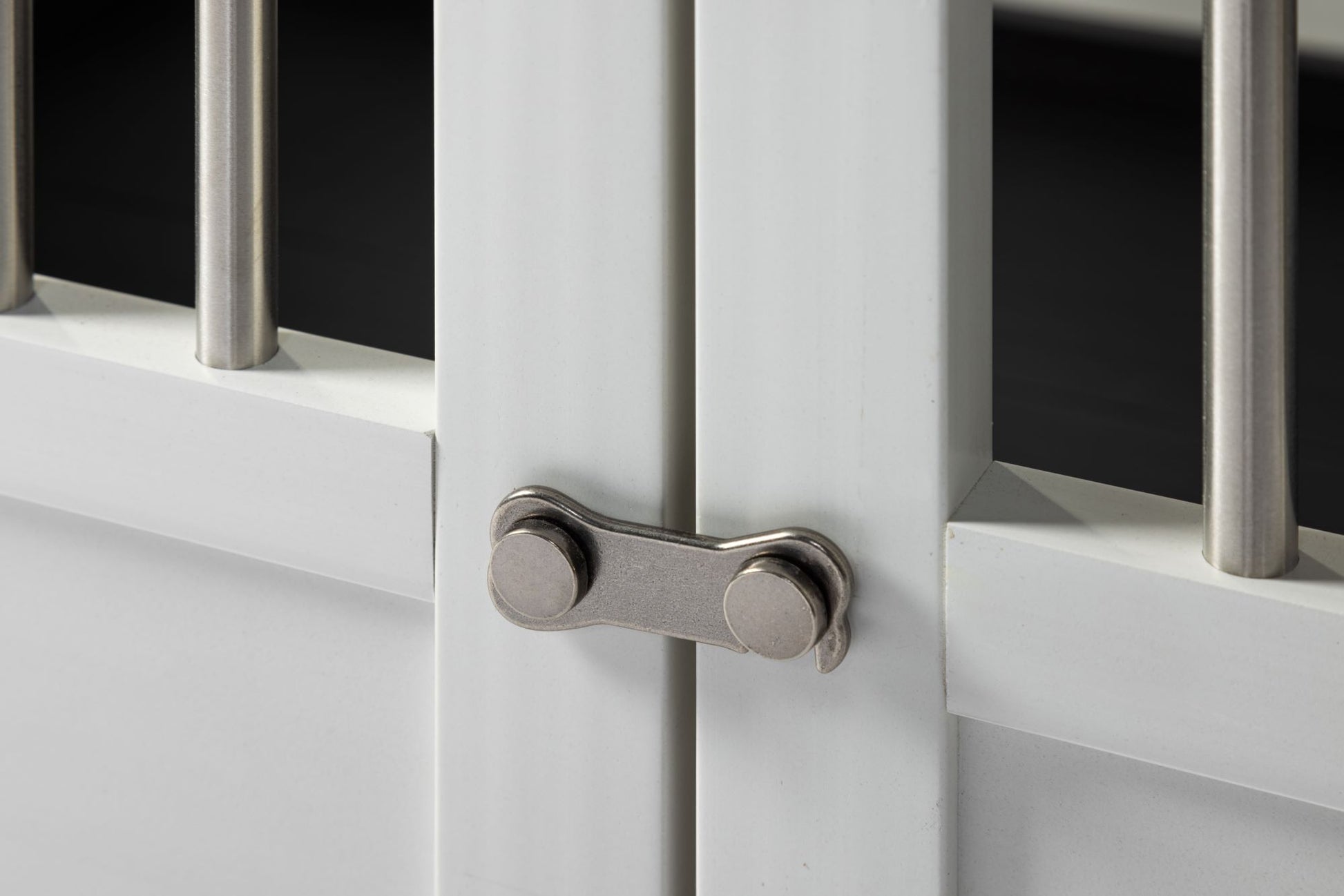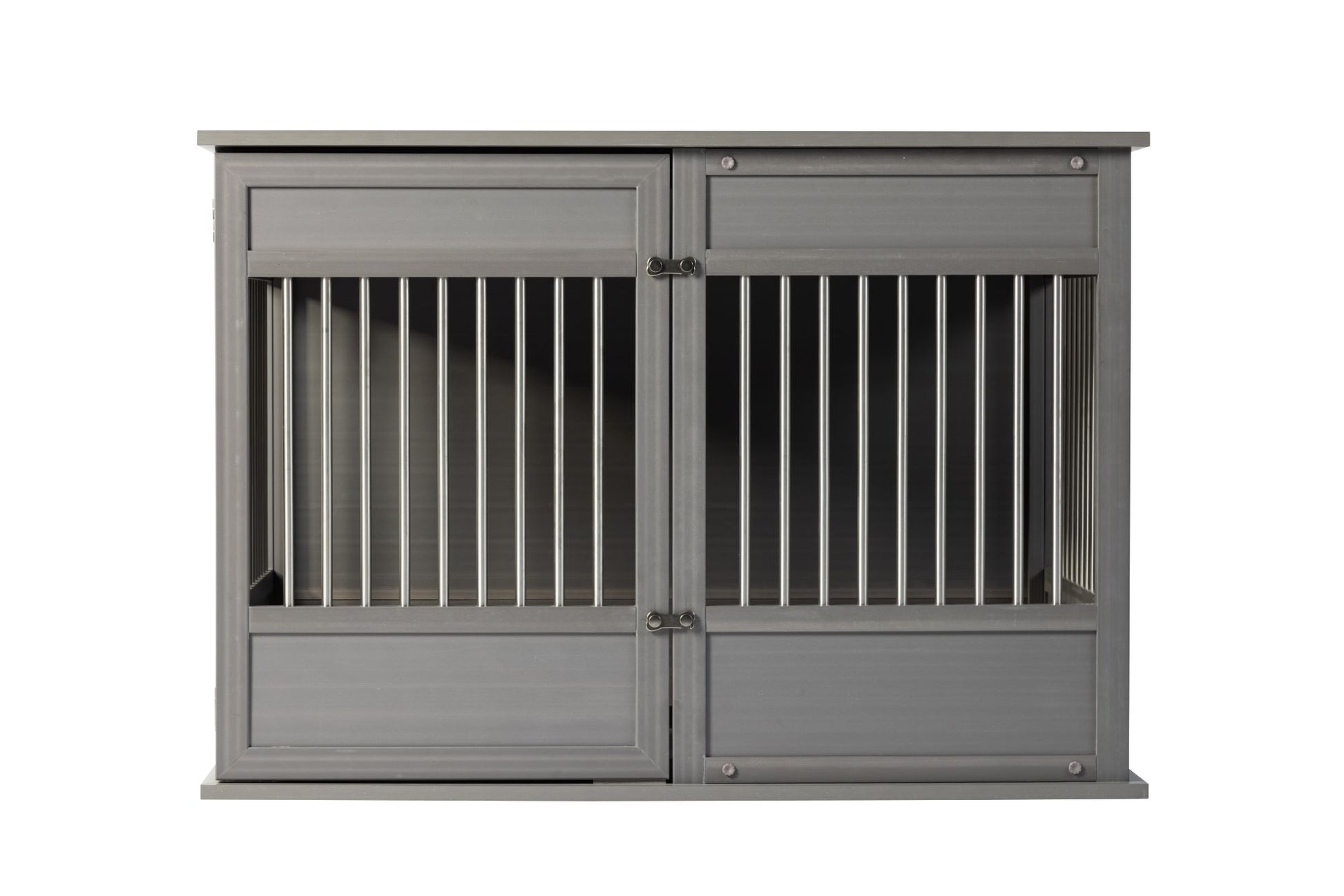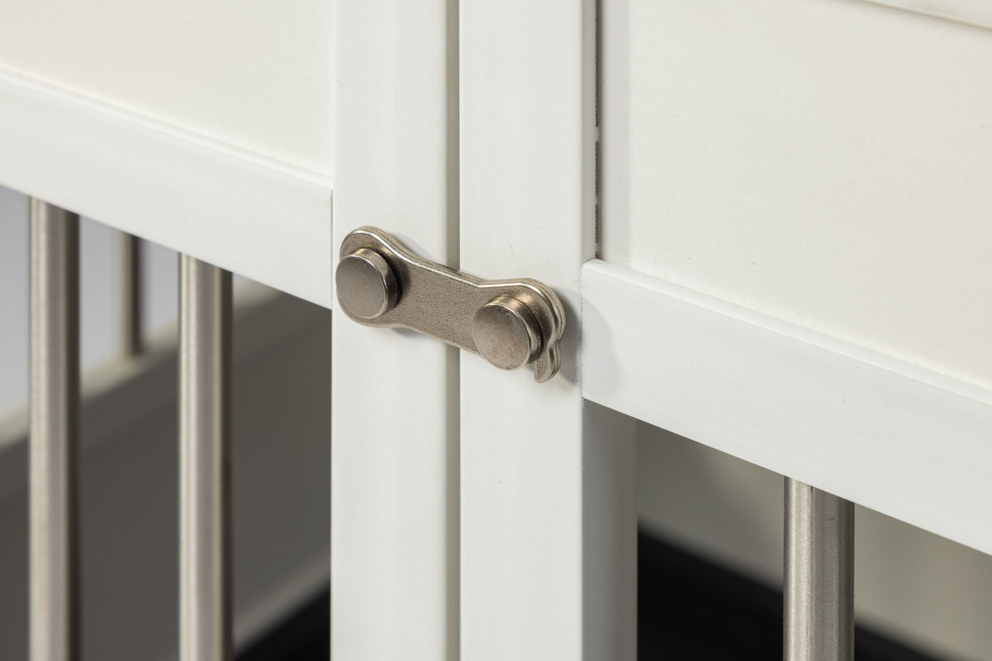 The New Age Pet® Horizon Pet Crate, crafted with durable ECOFLEX®, offers a stylish and functional solution for pet containment. As a variation of the popular InnPlace™ Crate, the Horizon Pet Crate features stainless steel spindles and charming bone-shaped latches. Designed with convenience in mind, the door is positioned on the long side of the crate, providing easy access. Available in three sizes and two colors, this crate complements most home decors while accommodating a wide range of dog breeds. With a 10-year manufacturer's warranty, the Horizon Pet Crate ensures long-lasting quality and peace of mind for pet owners.