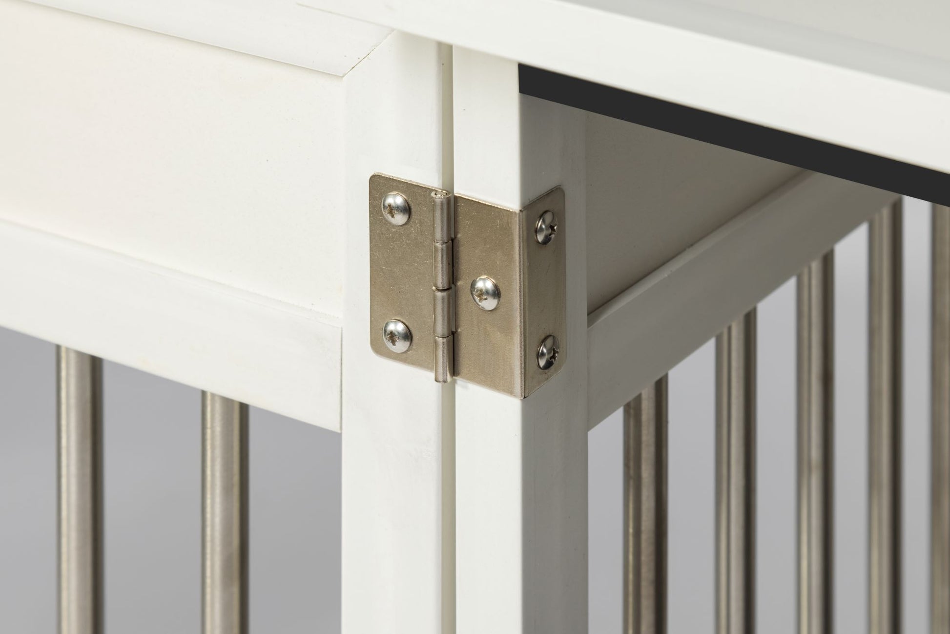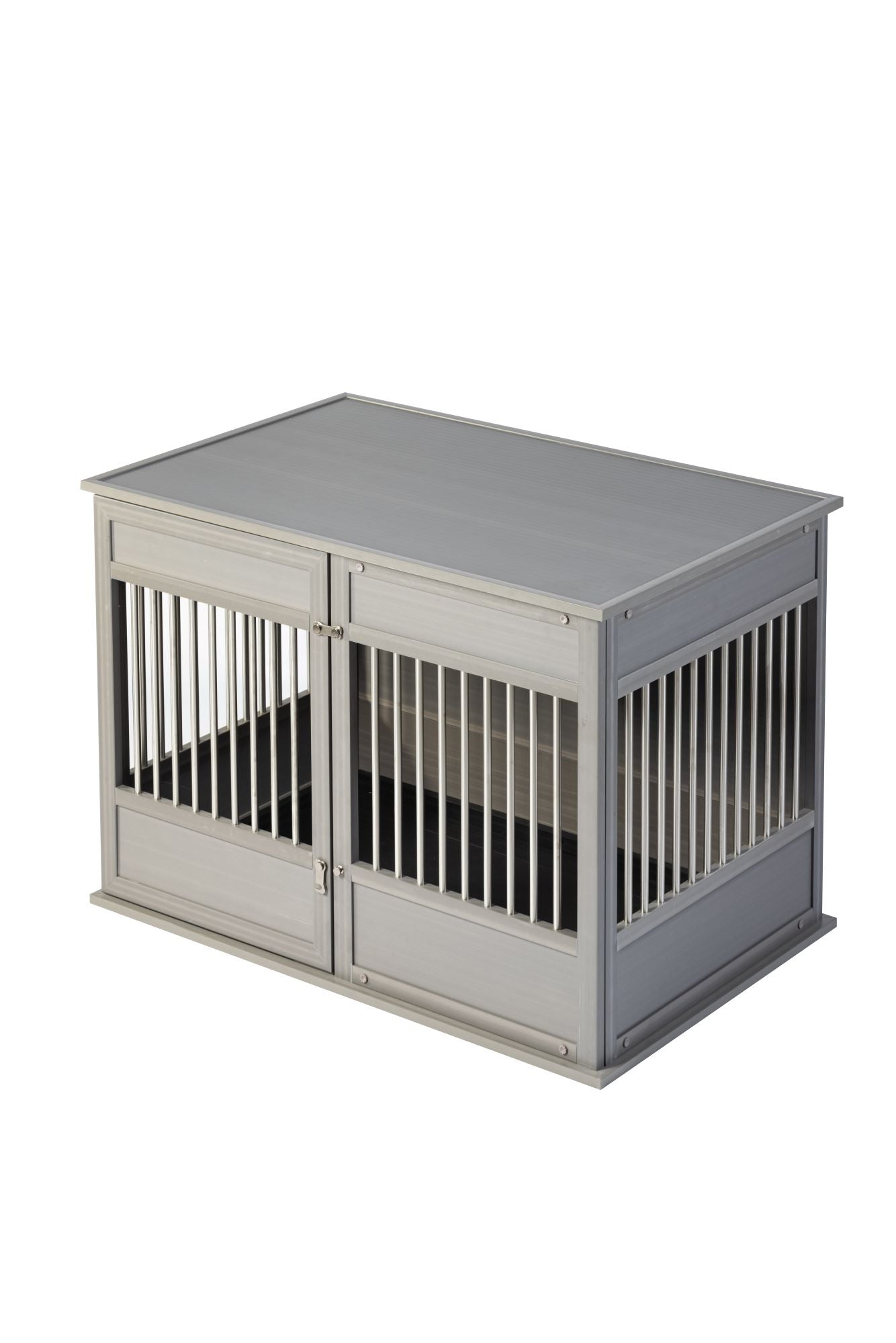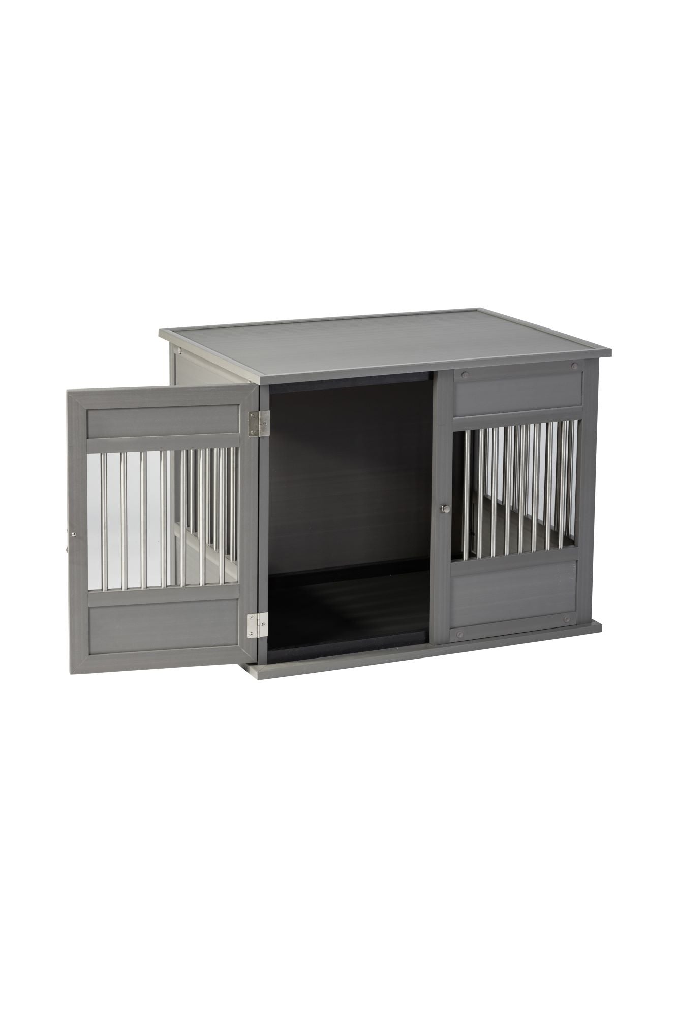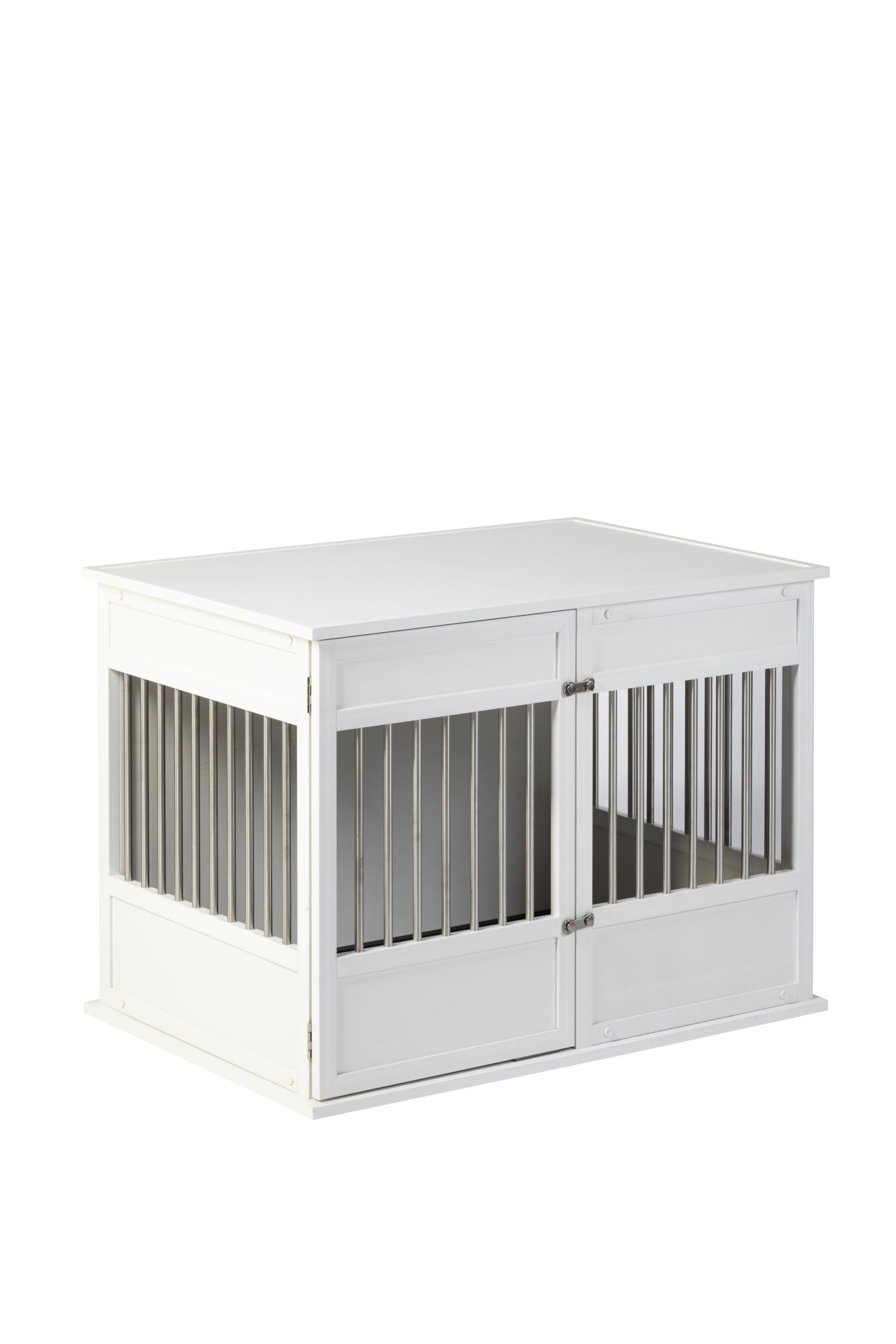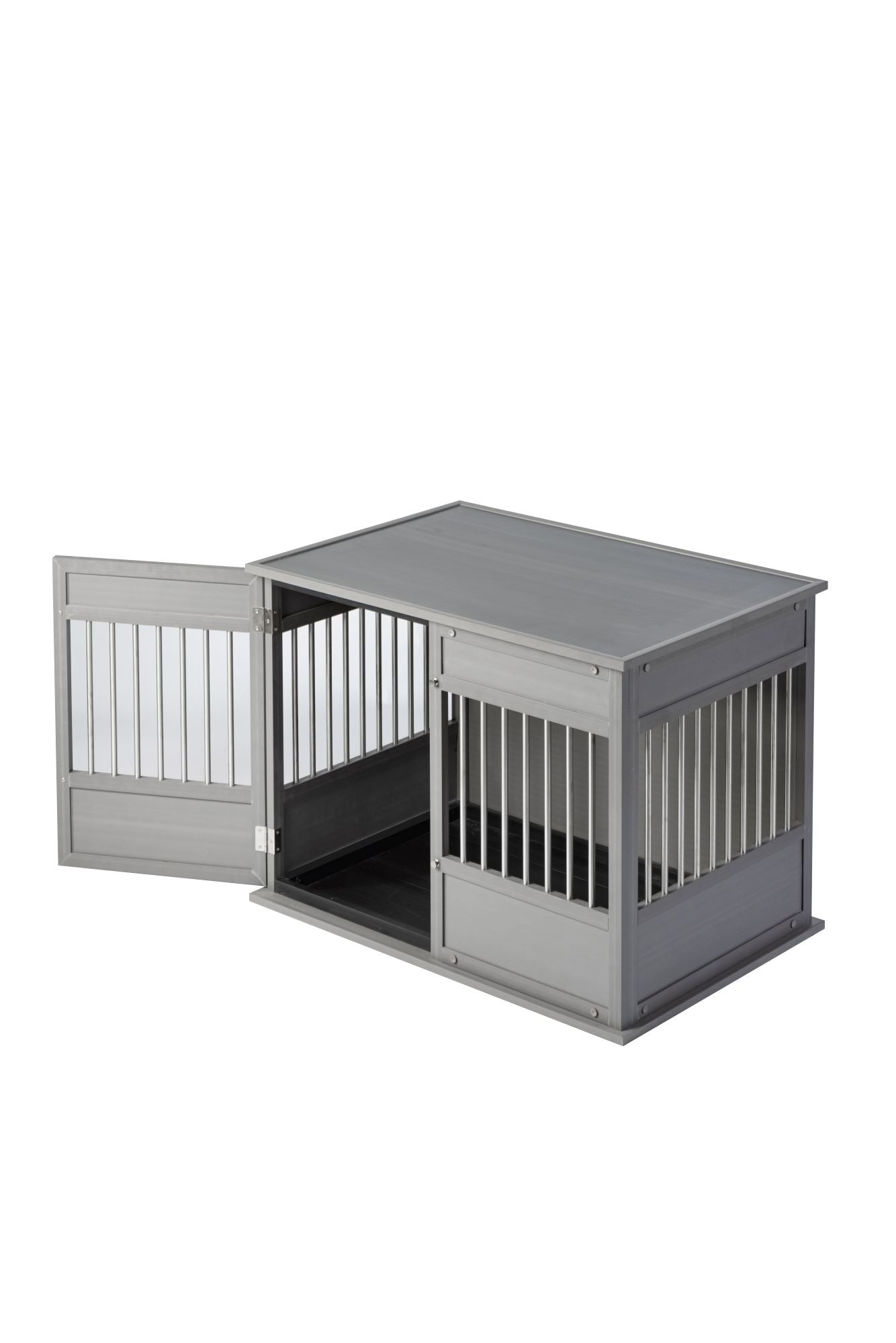The New Age Pet® Horizon Pet Crate, crafted with durable ECOFLEX®, offers a stylish and functional solution for pet containment. As a variation of the popular InnPlace™ Crate, the Horizon Pet Crate features stainless steel spindles and charming bone-shaped latches. Designed with convenience in mind, the door is positioned on the long side of the crate, providing easy access. Available in three sizes and two colors, this crate complements most home decors while accommodating a wide range of dog breeds. With a 10-year manufacturer's warranty, the Horizon Pet Crate ensures long-lasting quality and peace of mind for pet owners.