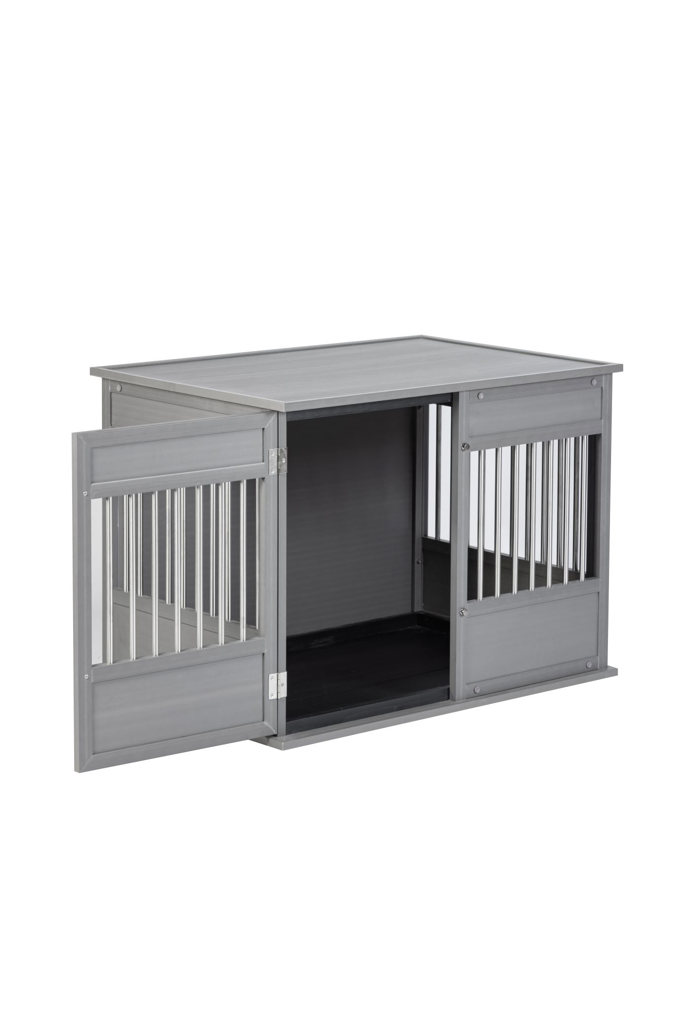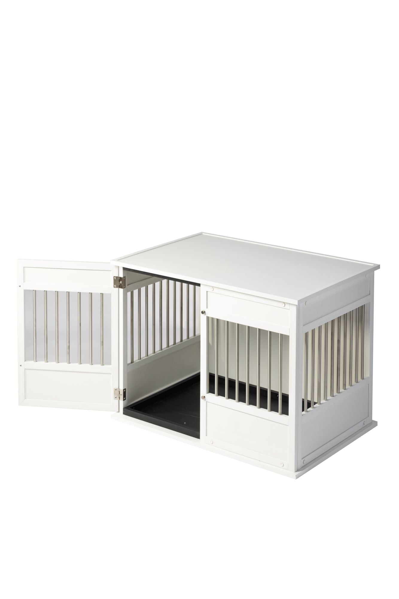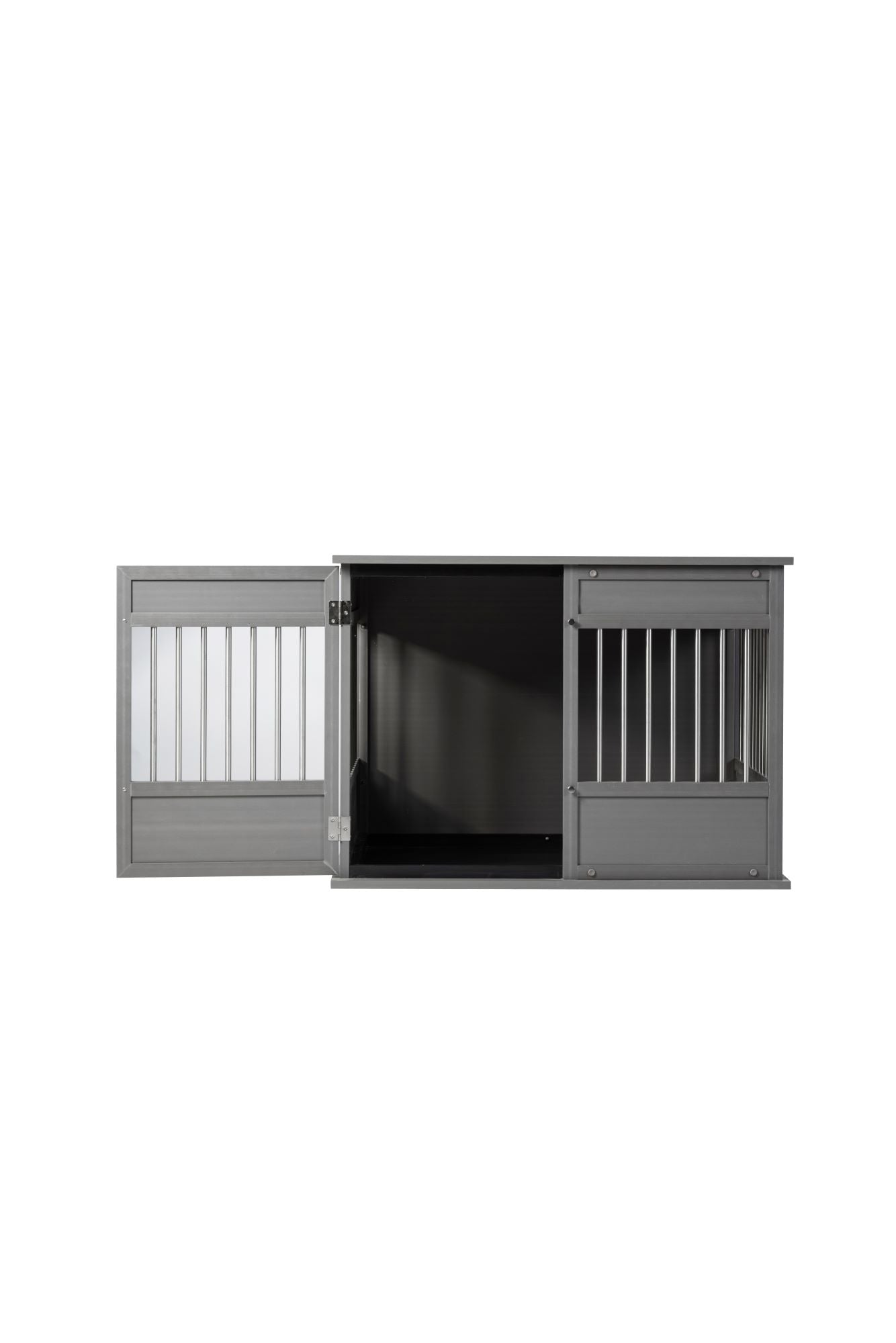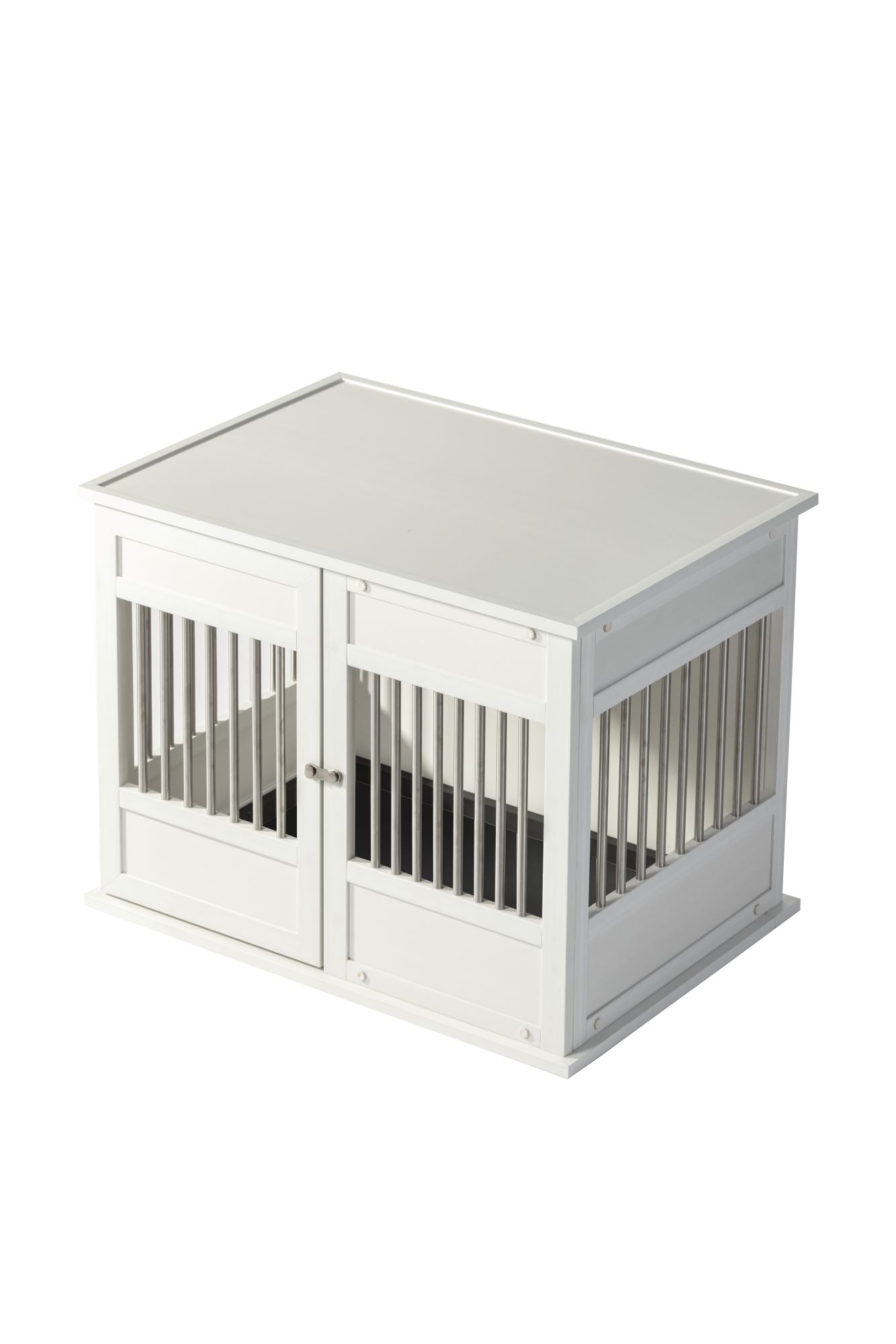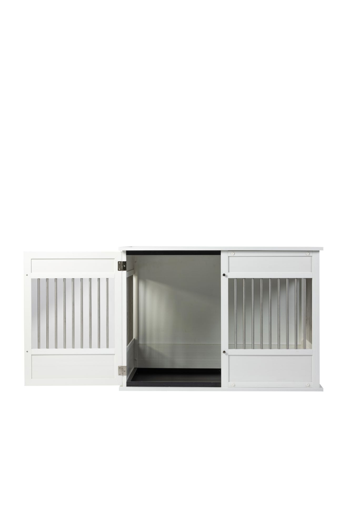 The New Age Pet® Horizon Pet Crate, crafted with durable ECOFLEX®, offers a stylish and functional solution for pet containment. As a variation of the popular InnPlace™ Crate, the Horizon Pet Crate features stainless steel spindles and charming bone-shaped latches. Designed with convenience in mind, the door is positioned on the long side of the crate, providing easy access. Available in three sizes and two colors, this crate complements most home decors while accommodating a wide range of dog breeds. With a 10-year manufacturer's warranty, the Horizon Pet Crate ensures long-lasting quality and peace of mind for pet owners.