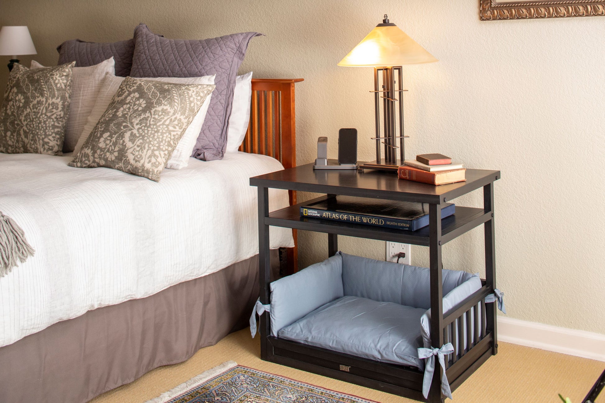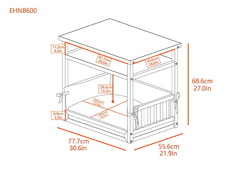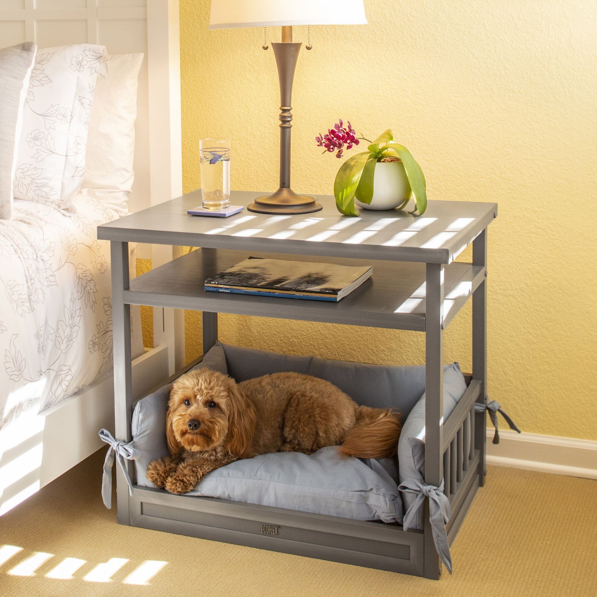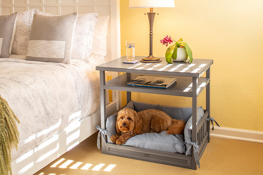 The New Age Pet® Nightstand Bed is made with ECOFLEX®, a proprietary composite blend of recycled polymers and reclaimed wood fiber by-products. The ECOFLEX® material is non-toxic, eco-friendly and impervious to moisture and odor, making it the perfect material for your pets’ furniture. All New Age Pet® furniture is backed by a 10-year limited manufacturer warranty. Give your pup his own place to rest with our Nightstand Bed. This bed features a plush, memory foam cluster cushion with removable cover for your pup, and tabletop and shelf for lamps, books, photos and more. Available in Espresso and Gray. New Age Pet® products are easy to assemble, easy to clean and easy to LOVE!