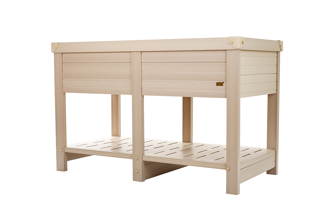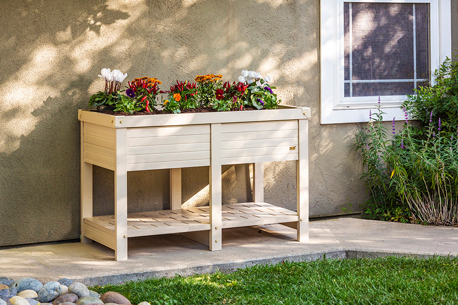 The New Age Garden® Marin Elevated Planter is made with ECOFLEX®, a proprietary composite blend of recycled polymers and reclaimed wood fiber by-products. The ECOFLEX® material is non-toxic, eco-friendly and impervious to moisture and odor, making it the perfect material for all of your gardening needs. All New Age Garden® items are backed by an unrivaled 10-year limited manufacturer warranty. This planter’s elevated design makes gardening possible for everyone! Easy access to all your flowers, fruits and veggies! No more back or knee pain while tending your garden. This eco-friendly elevated planter is durable, attractive and easy to assemble. All New Age Garden® planters can be painted for a custom look using readily available primer and paint. ECOFLEX planters outlast similar wooden planter. New Age Garden® products are easy to assemble, easy to clean and easy to LOVE!