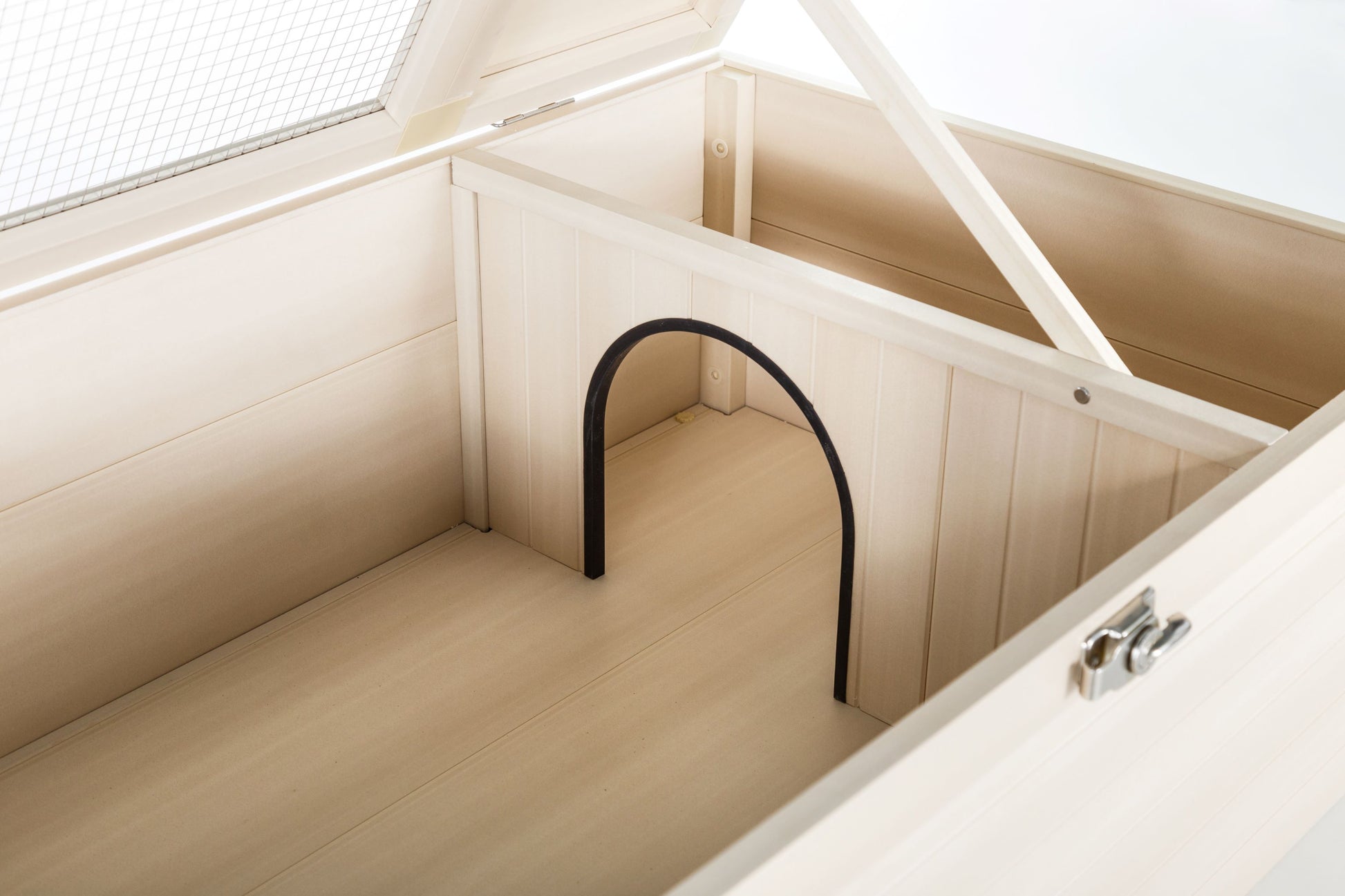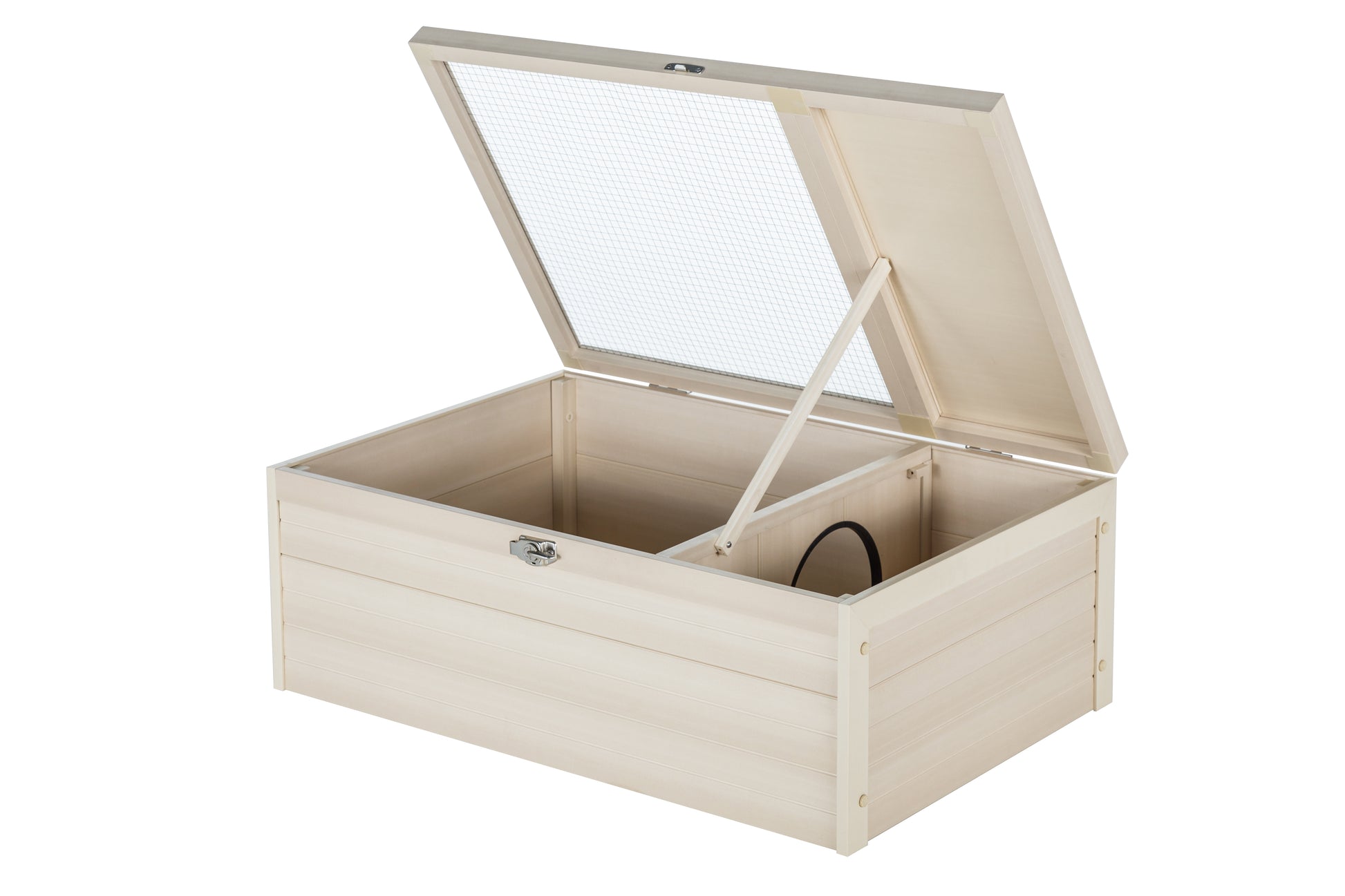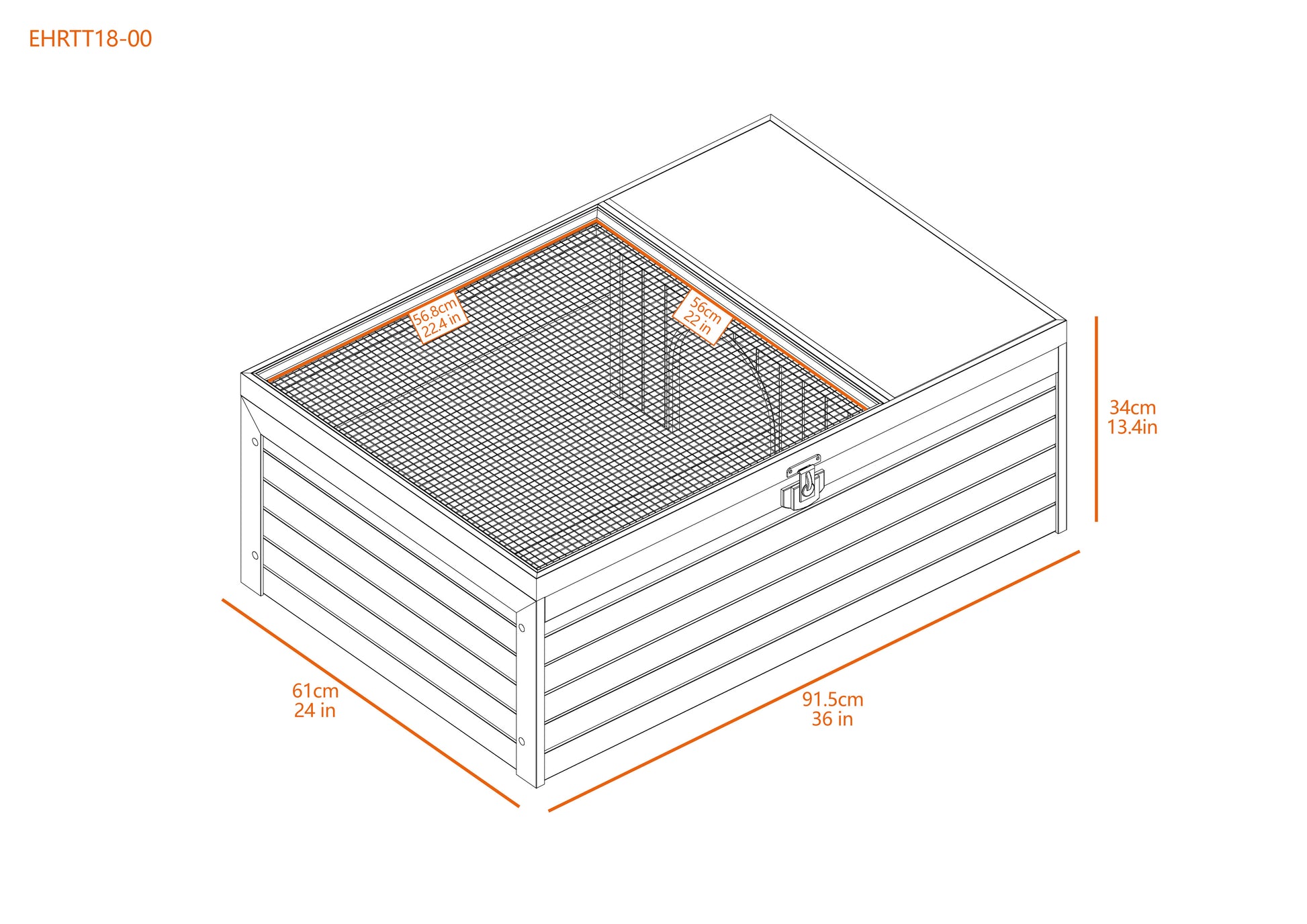 The New Age Pet® Sonoran Tortoise House is made with ECOFLEX®, a proprietary composite blend of recycled polymers and reclaimed wood fiber by-products. The ECOFLEX® material is non-toxic, eco-friendly and impervious to moisture and odor, making it the perfect material to keep your pet happy and healthy. All New Age Pet® outdoor products are backed by an unrivaled 10-year limited manufacturer warranty. The Sonoran Tortoise House features a hinged lid and a private, weather-resistant sleeping area with solid roof panel and a large, NeverRust™ stainless steel mesh screen over the living space so your tortoise can bask the day away in the sun. This tortoise house provides a safe place for young and growing tortoises to live year-round, whether it’s indoors or outdoors. Need more room? Add the New Age Pet® Sonoran Tortoise House Pen to give your tortoise even more room to roam. New Age Pet® products are easy to assemble, easy to clean and easy to LOVE!