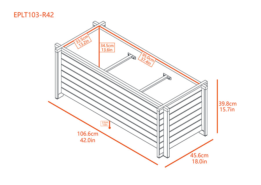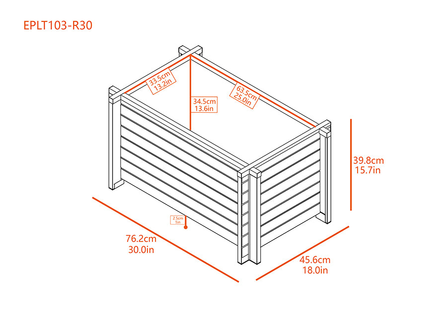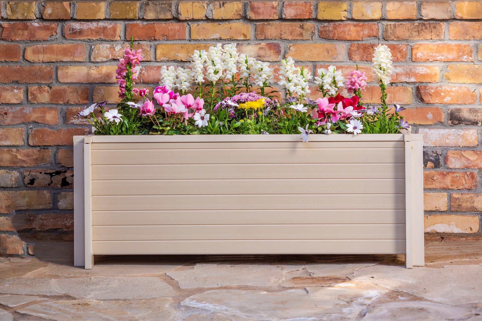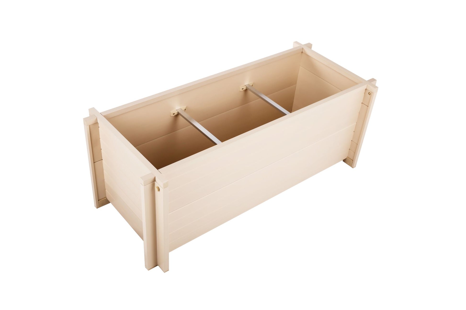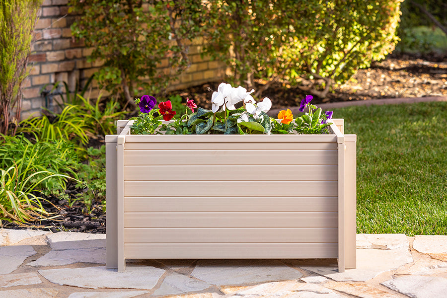 The New Age Garden® Rectangular Planter is made with ECOFLEX®, a proprietary composite blend of recycled polymers and reclaimed wood fiber by-products. The ECOFLEX® material is non-toxic, eco-friendly and impervious to moisture and odor, making it the perfect material for all of your gardening needs. All New Age Garden® items are backed by an unrivaled 10-year limited manufacturer warranty. The rectangular planters are the perfect raised outdoor planters for flowers and herbs alike. These eco-friendly planters are durable, attractive and easy to assemble. Planters can be painted for a custom look using readily available primer and paint. ECOFLEX® planters outlast similar wooden planters. Available in 2 sizes. New Age Garden® products are easy to assemble, easy to clean and easy to LOVE!