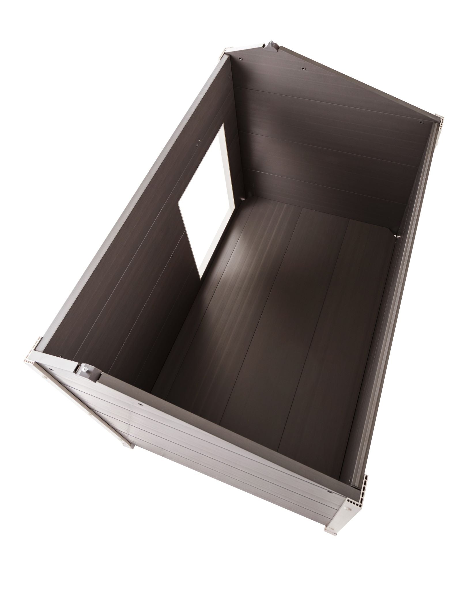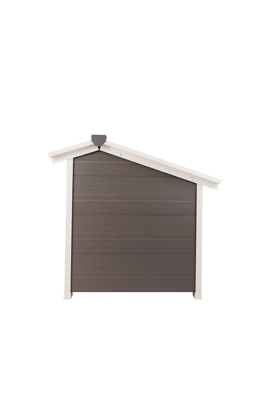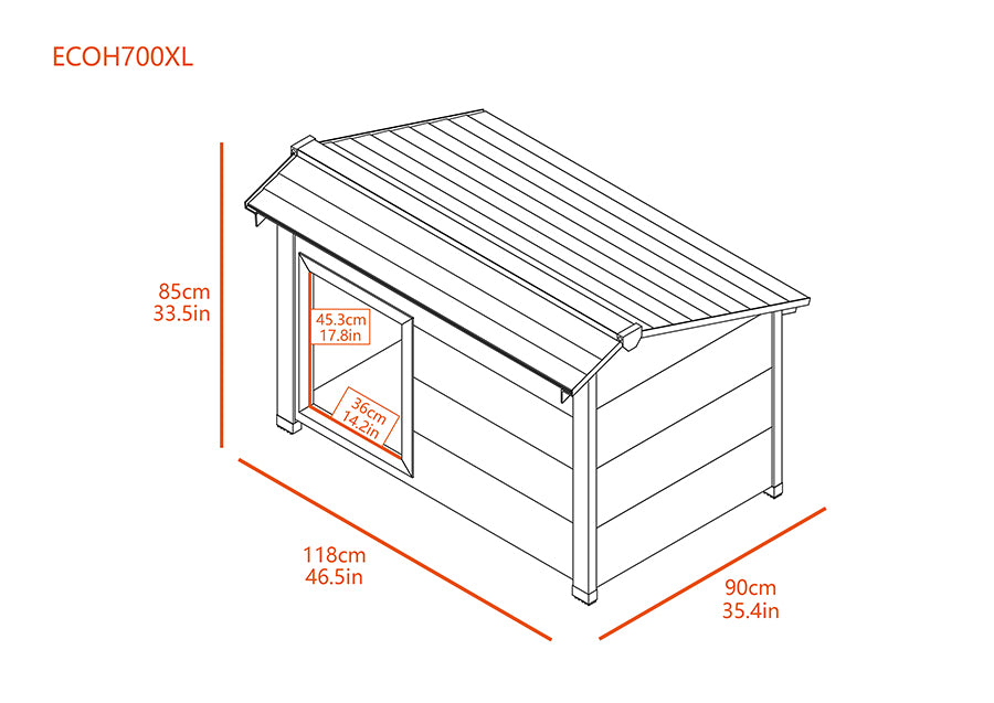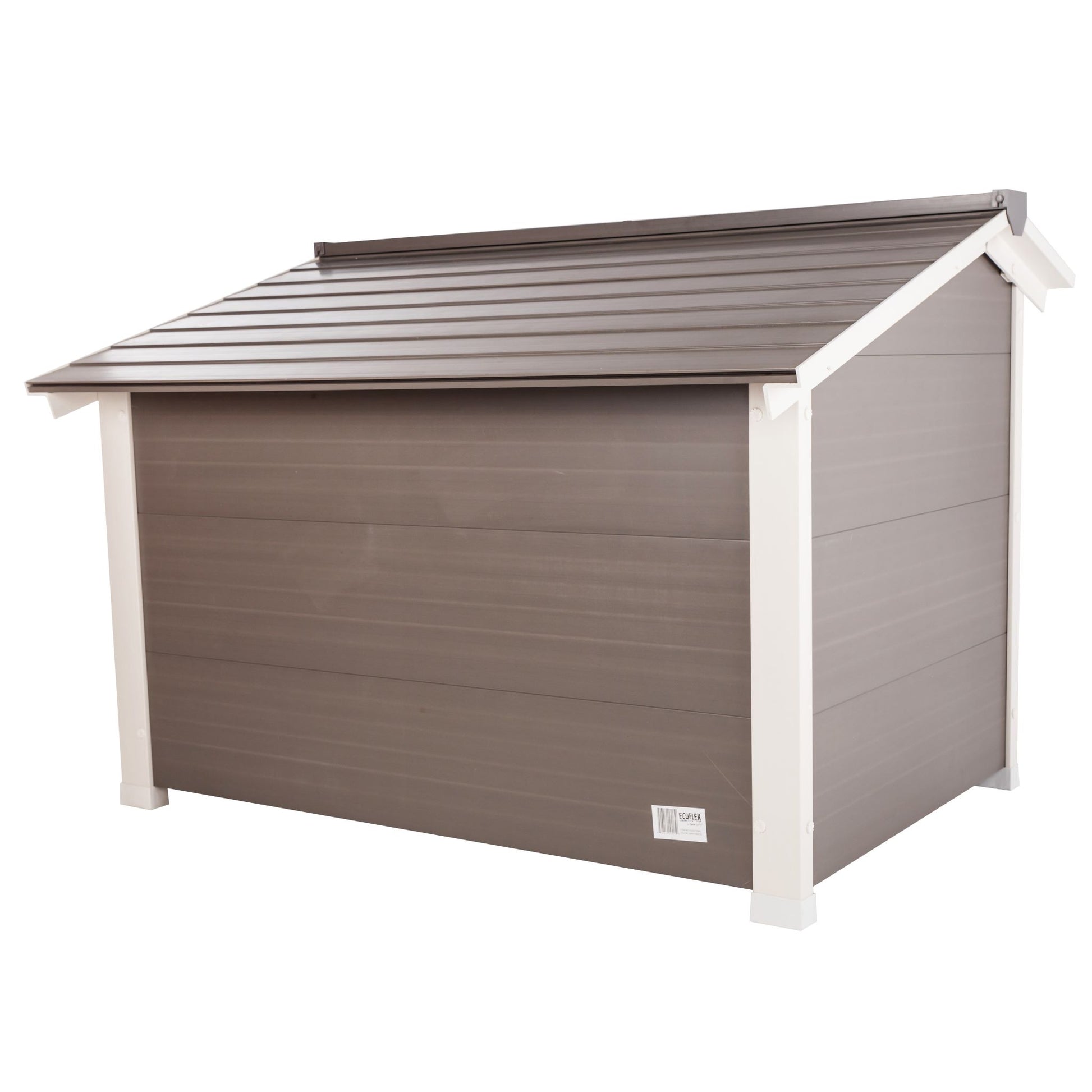 The New Age Pet® ThermoCore Insulated doghouse is made with ECOFLEX®, a proprietary composite blend of recycled polymers and reclaimed wood fiber by-products. The ECOFLEX® material is non-toxic, eco-friendly and impervious to moisture and odor, making it the perfect material to keep your pet happy and healthy. All New Age Pet® outdoor products are backed by an unrivaled 10-year limited manufacturer warranty. This X-Large, super insulated doghouse protects your pup from temperature extremes with ThermoCore technology. Cooler in the summer, warmer in the winter, stylish all year round! Door flap available for separate purchase. Available in Gray with White trim. New Age Pet® products are easy to assemble, easy to clean and easy to LOVE!